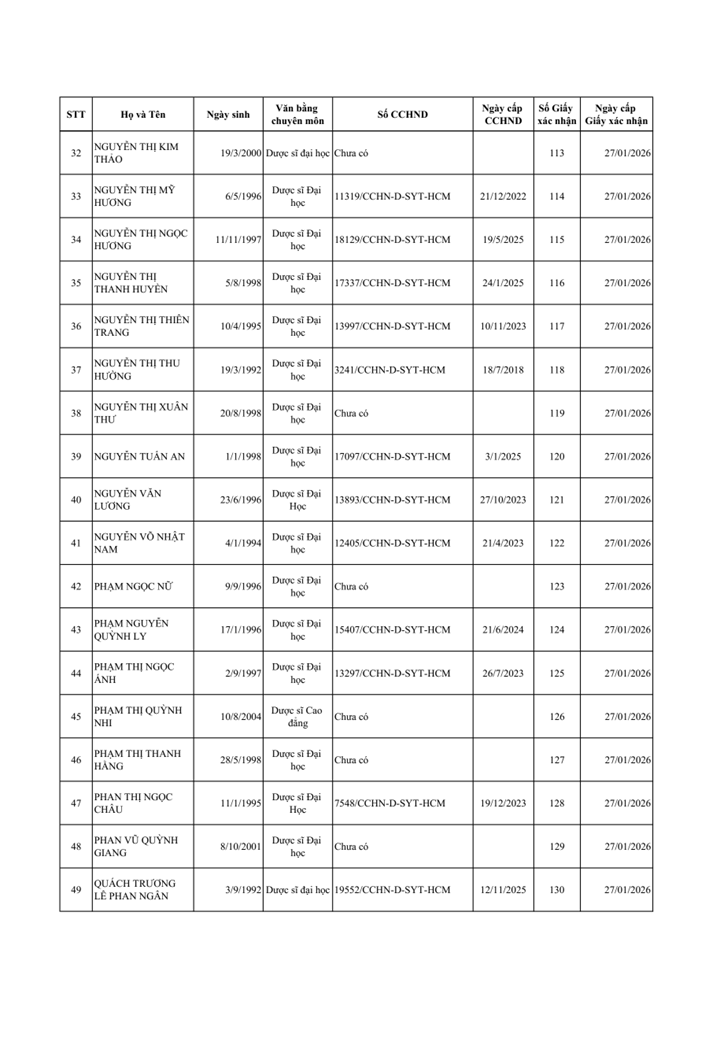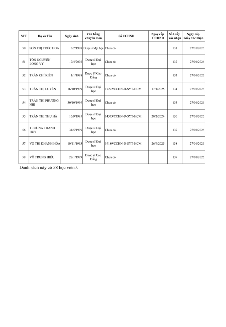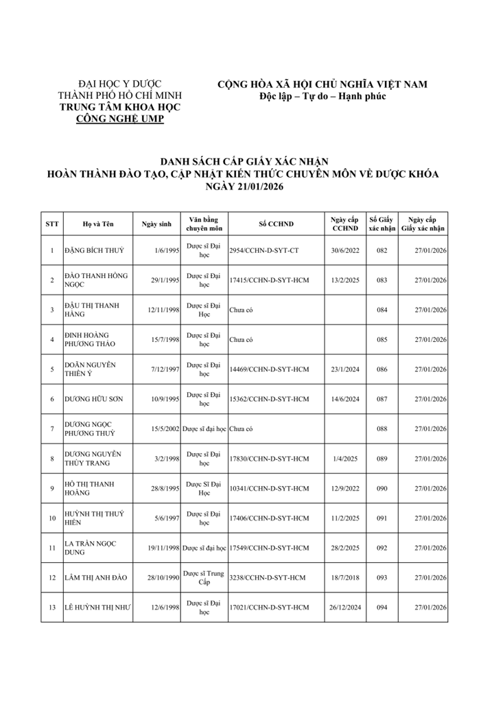 Nội dung: Quản lý dược, Dược lâm sàng Ngày cấp giấy xác nhận: 27/01/2026