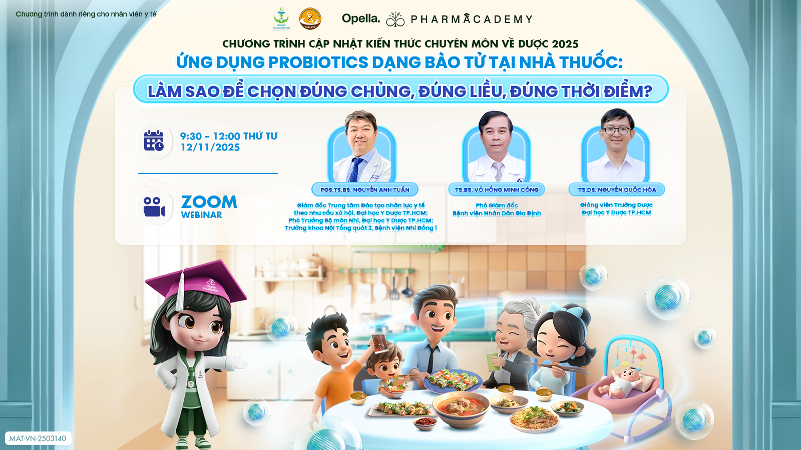 Với mong muốn giúp Dược sĩ nâng cao kiến thức chuyên môn và năng lực tư vấn cho người bệnh, Opella Việt Nam phối hợp cùng Trung tâm Khoa học Công nghệ UMP và Chi Hội Dược Nhà Thuốc TP.HCM tổ chức chuyên đề: “ỨNG DỤNG PROBIOTICS DẠNG BÀO TỬ TẠI NHÀ THUỐC: LÀM SAO ĐỂ CHỌN ĐÚNG CHỦNG, ĐÚNG LIỀU, ĐÚNG THỜI ĐIỂM?”.